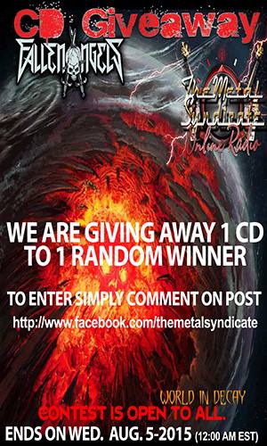 1 Fallen Angels (Thrash Band) – World In Decay CD to 1 random winner. Contest ends on Aug. 5th – 2015 – open to all.