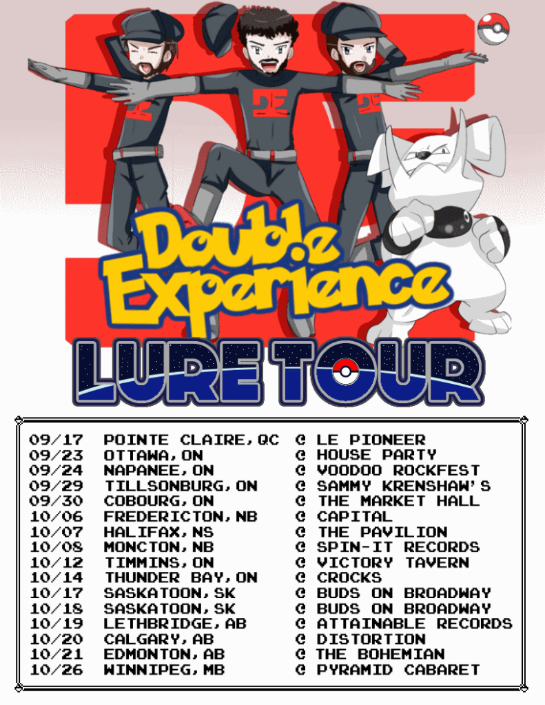 After several tours of the USA and Europe, Ottawa’s nerd-rock trio DOUBLE EXPERIENCE are returning for their first cross-Canada tour since 2014. The band will be performing songs off their third full-length, “Unsaved Progress”, including their recent single “The Glimmer Shot”; a Destiny-themed rock anthem, which earned them accolades from the creators of the video game itself.