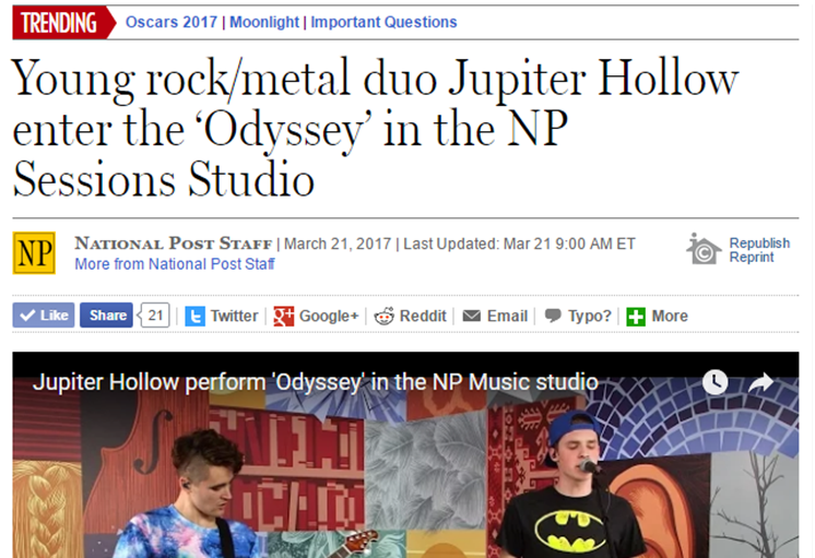 Check it out! Jupiter Hollow hit the National Post Sessions Studio to jam out some tunes! Playing their track ‘Odyssey and a cover of RUSH’s ‘Closer To The Heart’ Watch it now! #NPSessions & #NPMusic #toronto #progrock #rush #odyssey