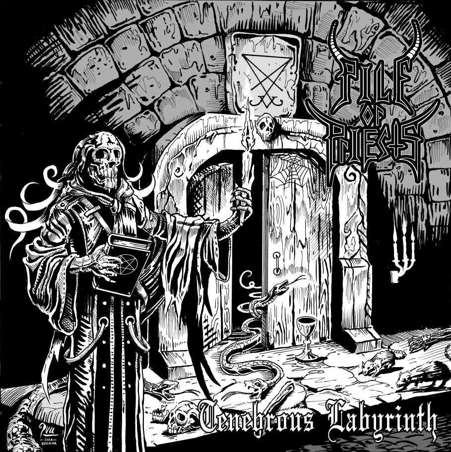 Teaming up with ToiletOvHell.com, the trio are premiering the EP’s title track, which can be heard at the following link: http://www.toiletovhell.com/premiere-pile-of-priests-tenebrous-labyrinth/