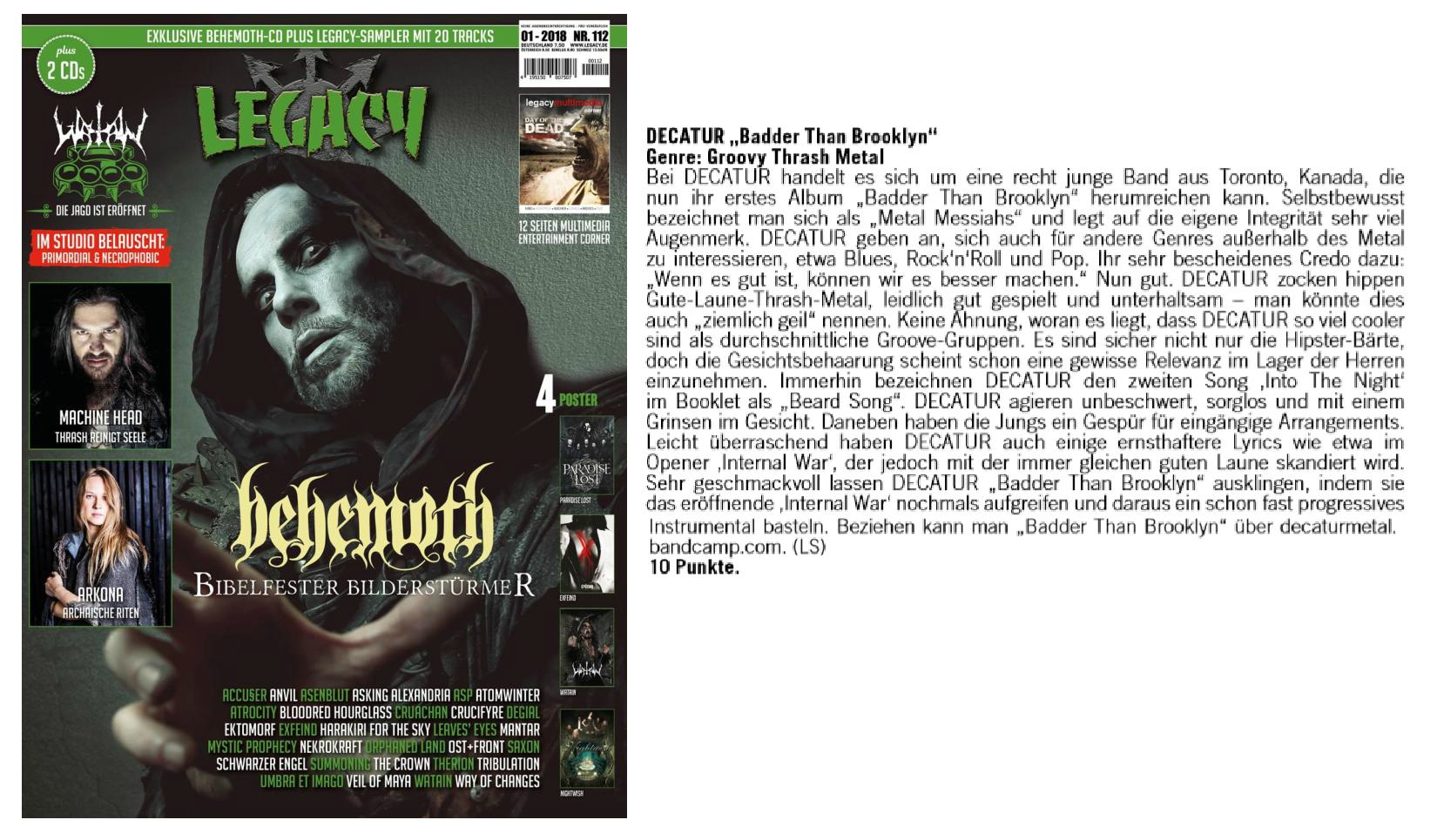 DECATUR “Badder Than Brooklyn” Genre: Groovy Thrash Metal DECATUR is a very young band from Toronto, Canada, that can now pass their first album “Badder Than Brooklyn”. Confidently they call themselves “Metal Messiahs” and pay close attention to their own integrity. DECATUR claim to be interested in other non-Metal genres such as Blues, Rock’n’Roll and Pop. Her very modest credo: “If it’s good, we can do it better.” Okay. DECATUR gambling hip Good-mood thrash metal, reasonably well played and entertaining – you could call this also “pretty cool”. No idea why DECATUR are so much cooler than average groove groups. It’s not just the hipster beards, but the facial hair seems to have some relevance in the men’s camp. After all, DECATUR refer to the second song, Into The Night ‘in the booklet as “Beard Song”. DECATUR act carefree, carefree and with a grin on the face. In addition, the guys have a feel for catchy arrangements. Quite surprisingly DECATUR also have some serious lyrics like in the opener ‘Internal War’, which, however, is chanted with the same good mood. DECATUR “Badder Than Brooklyn” ends with great taste, revisiting the opening ‘Internal War’ and crafting an almost progressive instrumental. You can refer to “Badder Than Brooklyn” via decaturmetal. bandcamp.com. (LS) 10 points.