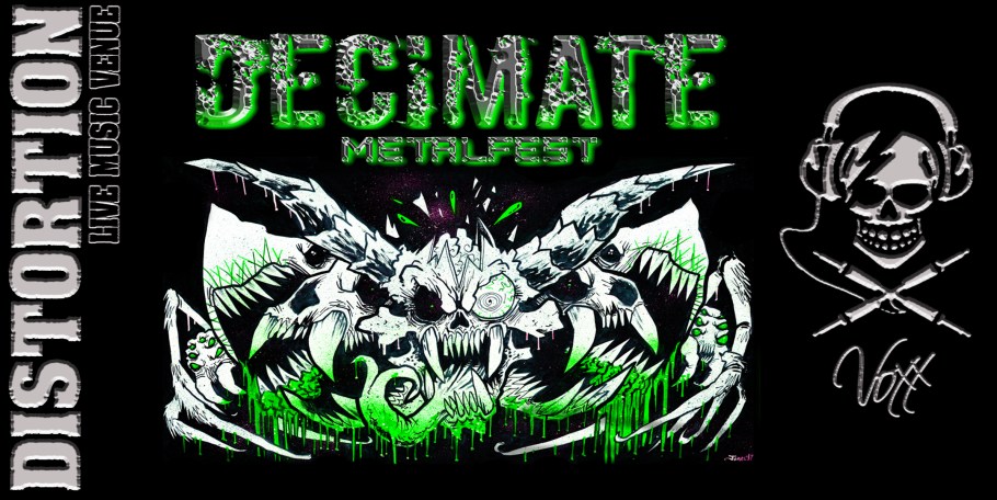 Decimate MetalFest is the brainchild of Sloan Voxx of Voxx Promotions, which is destined to become an annual Canadian metal pilgrimage to Calgary, Alberta, Canada. With the many yearly festivals becoming part of the national metal heritage, Sloan wants Decimate MetalFest to become one of the best-known events alongside the various festivals located within Alberta, and Western Canada. With Voxx Promos booking and promotional experience, and the support of metalheads internationally, there is nothing to stop them from reaching their goal of bringing in the masses and putting on incredible metal festivals for years to come!” (writing credit – Ingrid Newton)