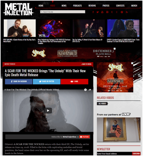 Fueled by a passion to bring horrific and grotesque sounds to their fans, Ottawa’s A SCAR FOR THE WICKED (ASFTW) are revealing their new music video “The Unholy”, the title track off their upcoming third EP set to be unearthed on June 29, 2018.