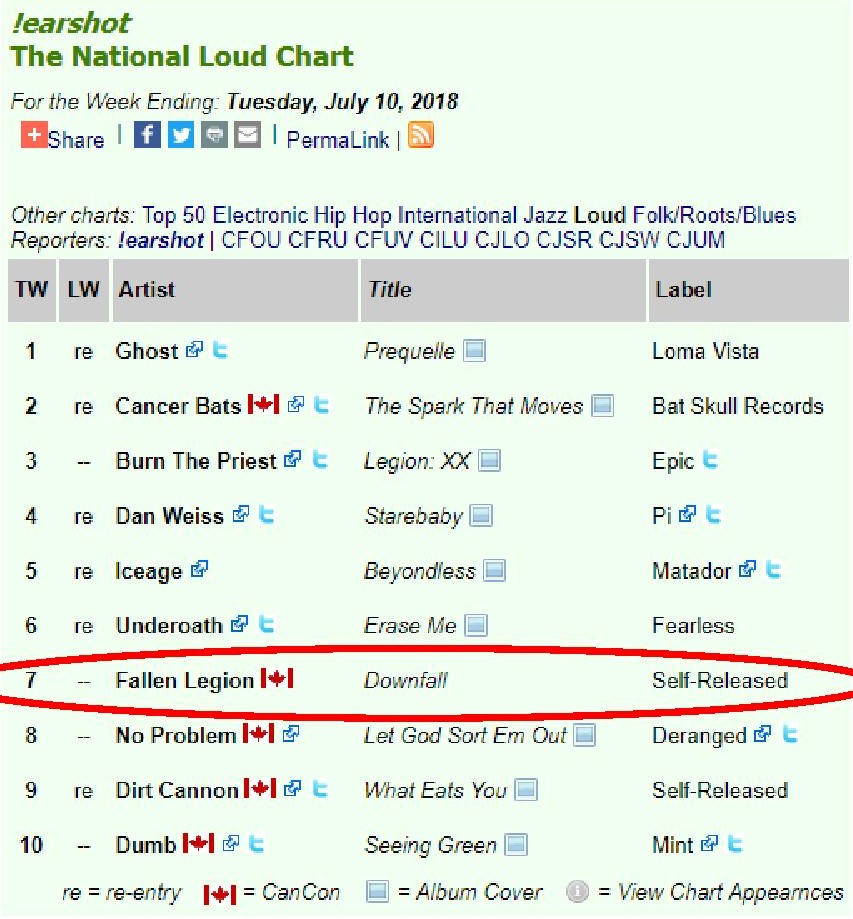 FALLEN LEGION #7 on Top 10 Canadian College Radio Loud Charts