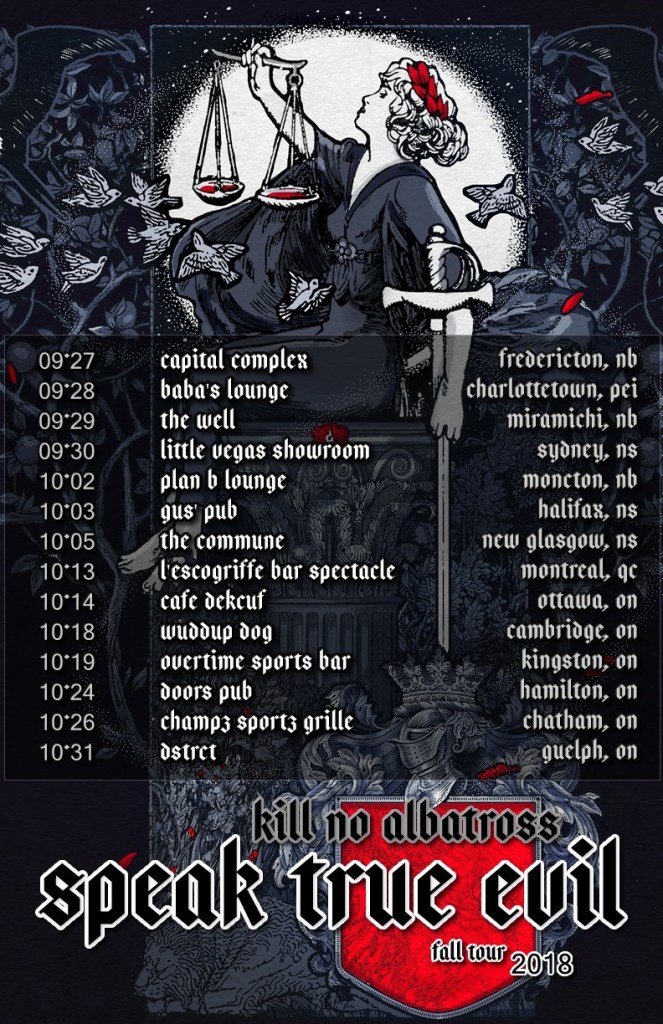 Unleashing their latest EP “Speak True Evil” this past July, wildly energetic Burlington, ON based KILL NO ALBATROSS will be hitting the road once again this coming fall in support of the release. Earlier this summer they toured across Ontario and Quebec including a performance on Vans Warped Tour. For this upcoming fall tour, they will be heading further East for the first time adding show dates in New Brunswick, Nova Scotia and Prince Edward Island.