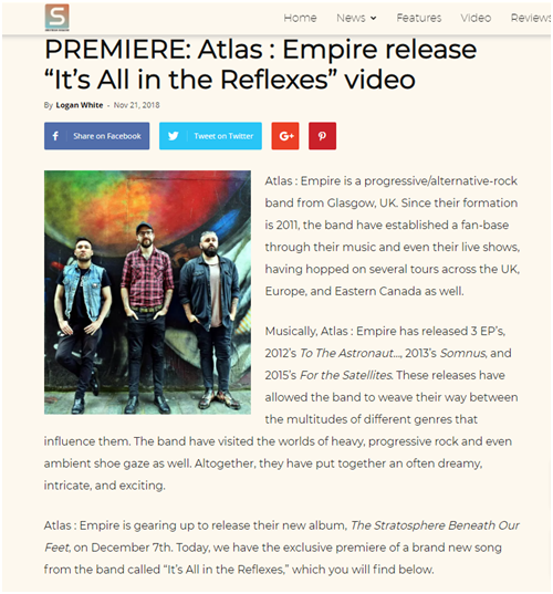 Glasgow Prog Rockers ATLAS : EMPIRE Premiere Music Video “It’s All In The Reflexes” via Substream Mag