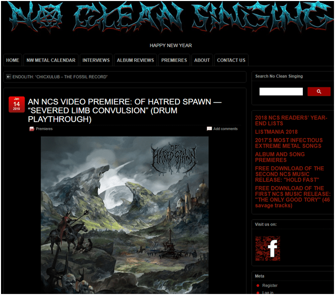 Watch the playthrough at https://www.nocleansinging.com/2019/01/14/an-ncs-video-premiere-of-hatred-spawn-severed-limb-convulsion-drum-playthrough/