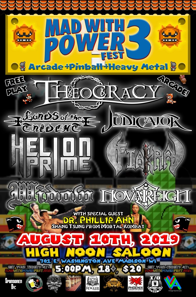 Villains and heroes alike will once again come together on August 10, 2019 to enjoy a buffet of power metal, arcade games and other nerdy delights at the third Mad With Power Festival in Madison, Wisconsin, USA. This one-day fest boasts seven kickass bands playing a variety of power metal and an exclusive appearance from Phillip Ahn, M.D. the actor who played Shang Tsung on Mortal Kombat II.