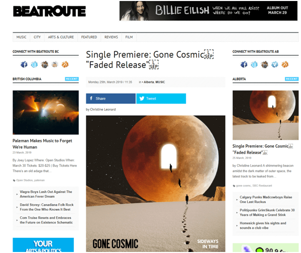 Beatroute Premiere Psychedelic Vibes of GONE COSMIC’s “Faded Release” Off Upcoming Album “Sideways In Time”