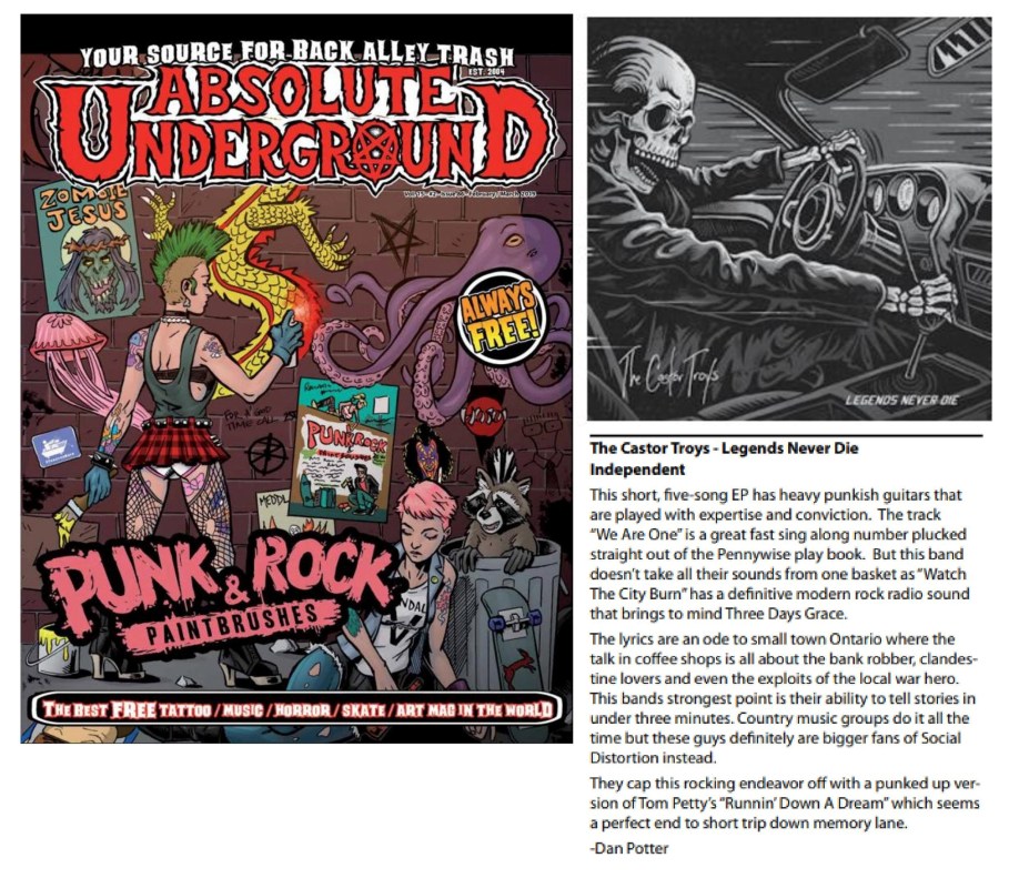 FEB – MARCH 2019 – ABSOLUTE UNDERGROUND MAG – THE CASTOR TROYS March 29, 2019 by Asher · The Castor Troys Share this:TweetShare on Tumblr Click to share on Reddit (Opens in new window) Reddit More Click to share on Blogger (Opens in new window) Blogger Like Loading... Related « Prev Next » Leave A Comment ↓ Comments Leave a comment Cancel reply Δ Trackbacks & Pingbacks No incoming links found yet.
