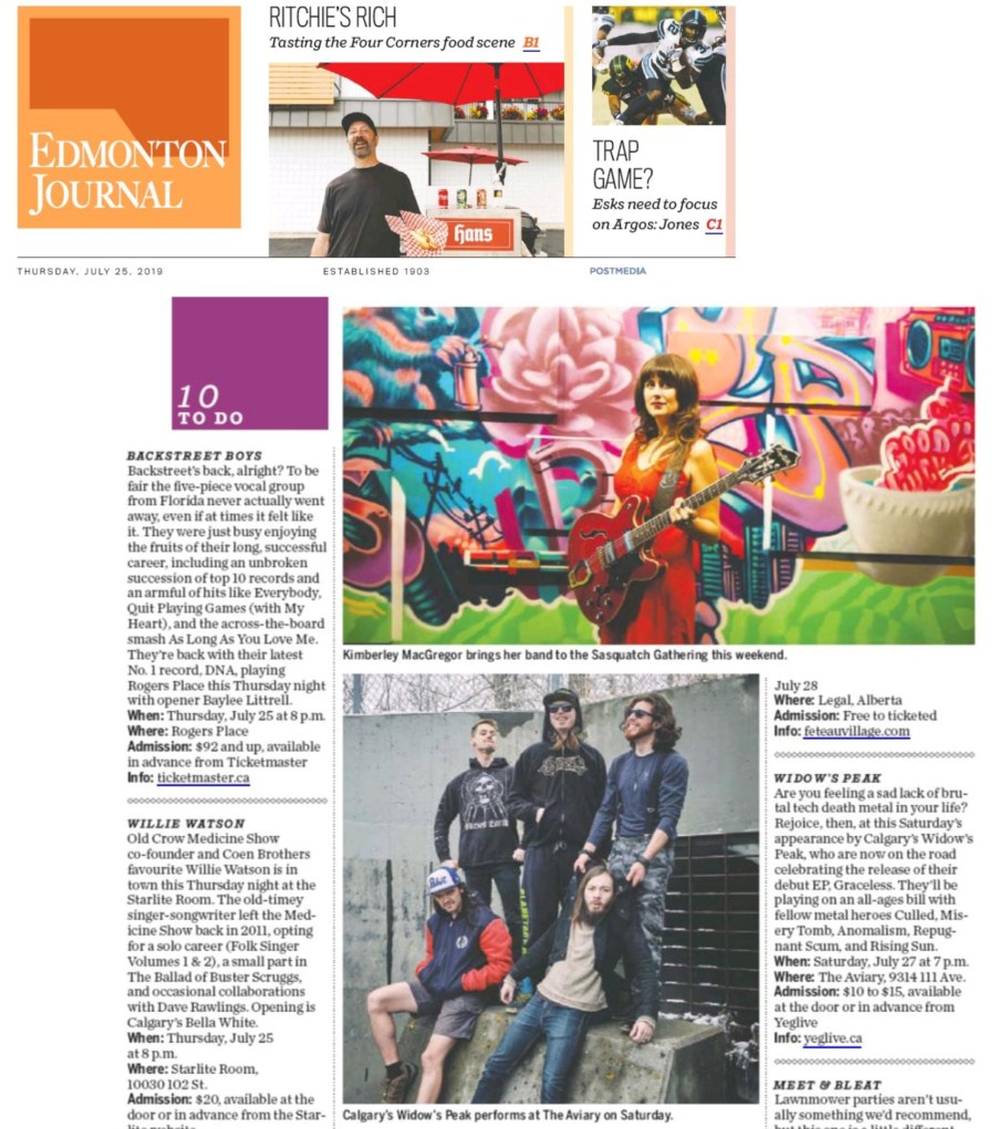 Widow’s Peak – Edmonton Journal – July 25 August 7, 2019 by Asher · Widow's Peak Share this:TweetShare on Tumblr Click to share on Reddit (Opens in new window) Reddit More Click to share on Blogger (Opens in new window) Blogger Like Loading... Related « Prev Next » Leave A Comment ↓ Comments Leave a comment Cancel reply Δ Trackbacks & Pingbacks No incoming links found yet.