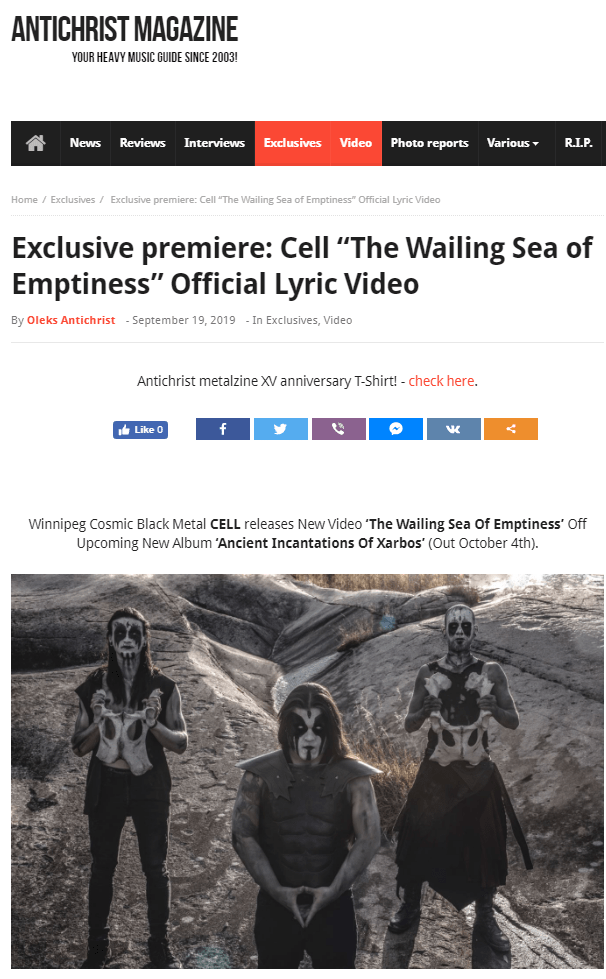 Following in the footsteps of classic bands like Emperor, Death, Morbid Angel, and Immortal, CELL have become weavers of the arcane adding a theatrical stage show to their modern take on black metal. The single ‘The Wailing Sea Of Emptiness’ is a prime launching pad to travel through Xarbos on this audio journey. Cell explains the story of the track: