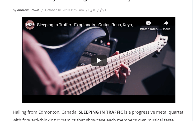 Edmonton’s SLEEPING IN TRAFFIC Premiere “Exoplanets” Guitar/Bass/Keys Playthrough via GearGods