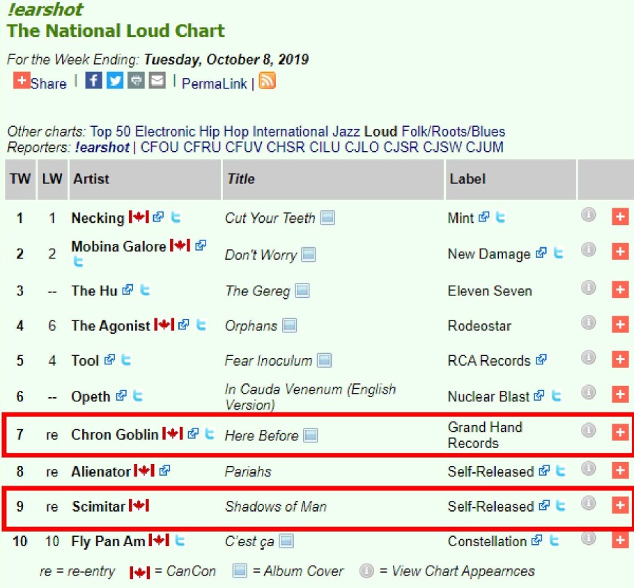 and the !earshot – October 2019 – Top 20 Loud Chart is in… Thank You MDs and DJs for all your airplay support \m/\m/ #4 Scimitar #6 Chron Goblin November 8, 2019 by Asher · Chron Goblin · Scimitar and the !earshot – October 2019 – Top 20 Loud Chart is in… Thank You MDs and DJs for all your airplay support \m/\m/ #4 Scimitar #6 Chron Goblin https://earshot-online.com/charts/2019/October/loud.cfm Share this:TweetShare on Tumblr Click to share on Reddit (Opens in new window) Reddit More Click to share on Blogger (Opens in new window) Blogger Like Loading... Related « Prev Next » Leave A Comment ↓ Comments Leave a comment Cancel reply Δ Trackbacks & Pingbacks No incoming links found yet.