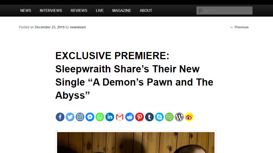 Sleepwraith‘s first single ‘The Aphelion Complex’ is also streaming on YouTube and website Sleepwraith.com