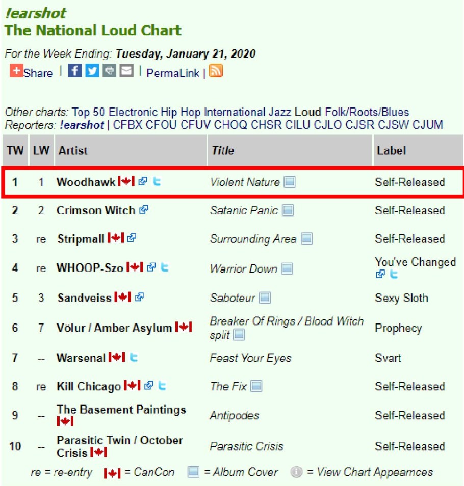 Thank you for all your support MDs and DJs! #1 Woodhawk !earshot – The National Loud Chart For the Week Ending: Tuesday, January 21, 2020 January 22, 2020 by Asher · Woodhawk Thank you for all your support MDs and DJs! #1 Woodhawk !earshot – The National Loud Chart For the Week Ending: Tuesday, January 21, 2020 https://www.earshot-online.com/charts/index.cfm?intChartTypeID=106&dWeekOfID=2020-01-21 Share this:TweetShare on Tumblr Share on Reddit (Opens in new window) Reddit More Share on Blogger (Opens in new window) Blogger Like Loading... Related « Prev Next » Leave A Comment ↓ Comments Leave a comment Cancel reply Δ Trackbacks & Pingbacks No incoming links found yet.