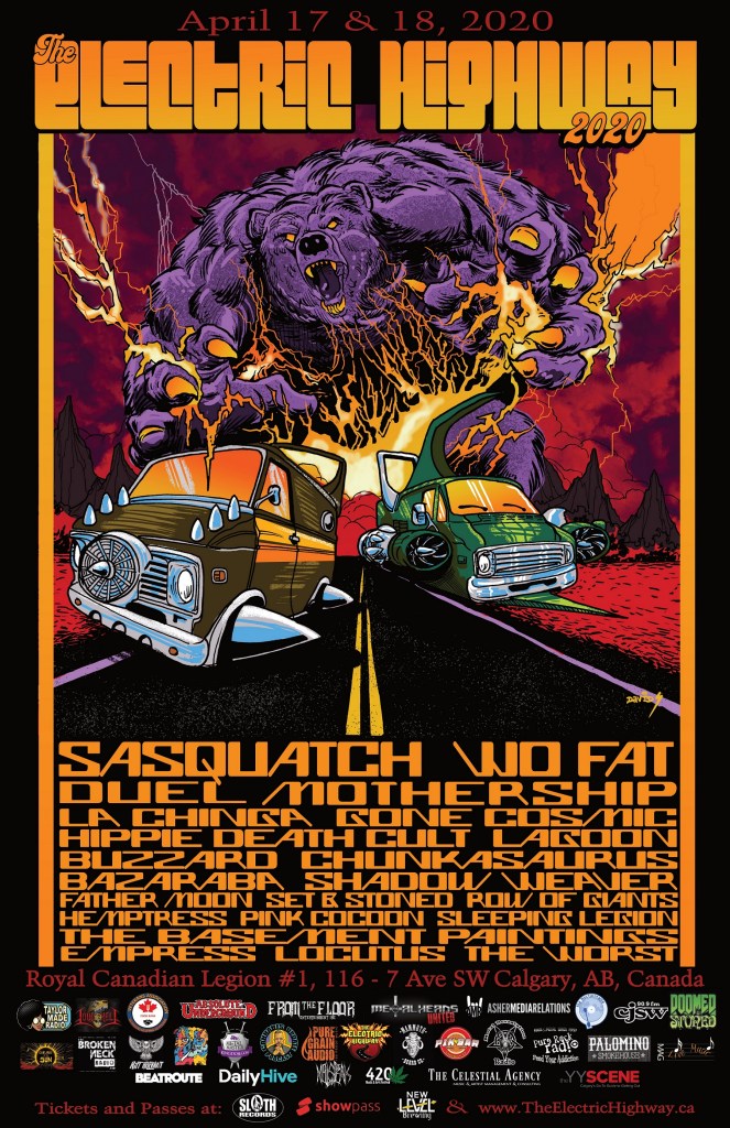 Buckle up for The Electric Highway Festival, two days of killer bands, rad artists and fuzzy vibes April 17 & 18, 2020 at the historic Royal Canadian Legion #1 in downtown Calgary, Alberta, Canada.