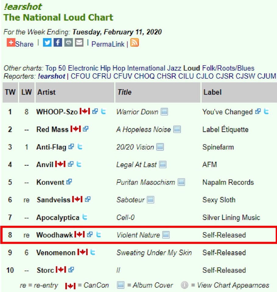 Thank You Canadian MDs and DJs #8 @Woodhawkriffs earshot The National Loud Chart For the Week Ending: Tuesday, February 11, 2020 https://www.earshot-online.com/charts/index.cfm?intChartTypeID=106&dWeekOfID=2020-02-11 #metal #heavymetal #metalhead #metalheads #metalband #metalforlife #metalmusic #metalforever #heavymetalmusic #canadianmetal #ashermedia #newmusic #metalheadsofinstagram #instametal #metalart #albumstream #radio #earshot #loud #stonerrock