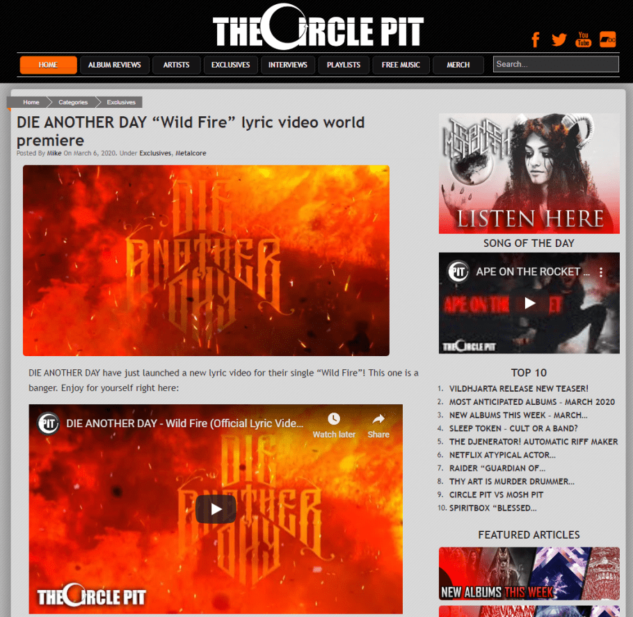 Die Another Day Set The Pit Ablaze With Video ‘Wild Fire’