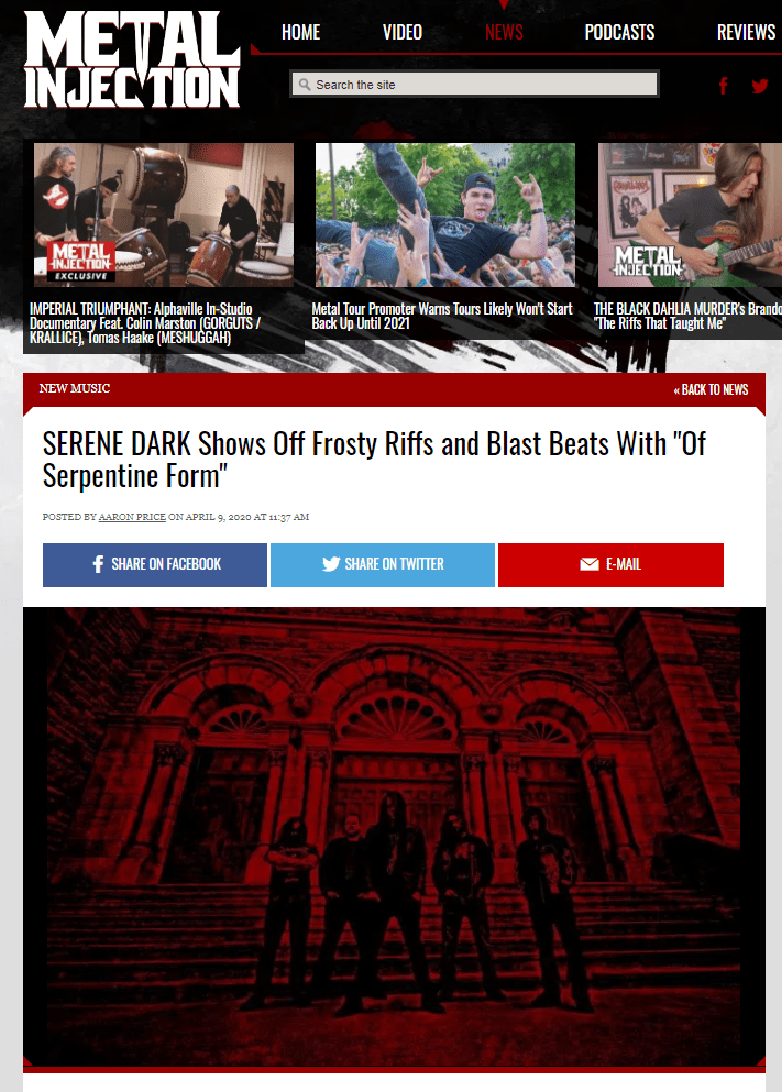 Serene Dark Premiere Music Video “Of Serpentine Form” via MetalInjection