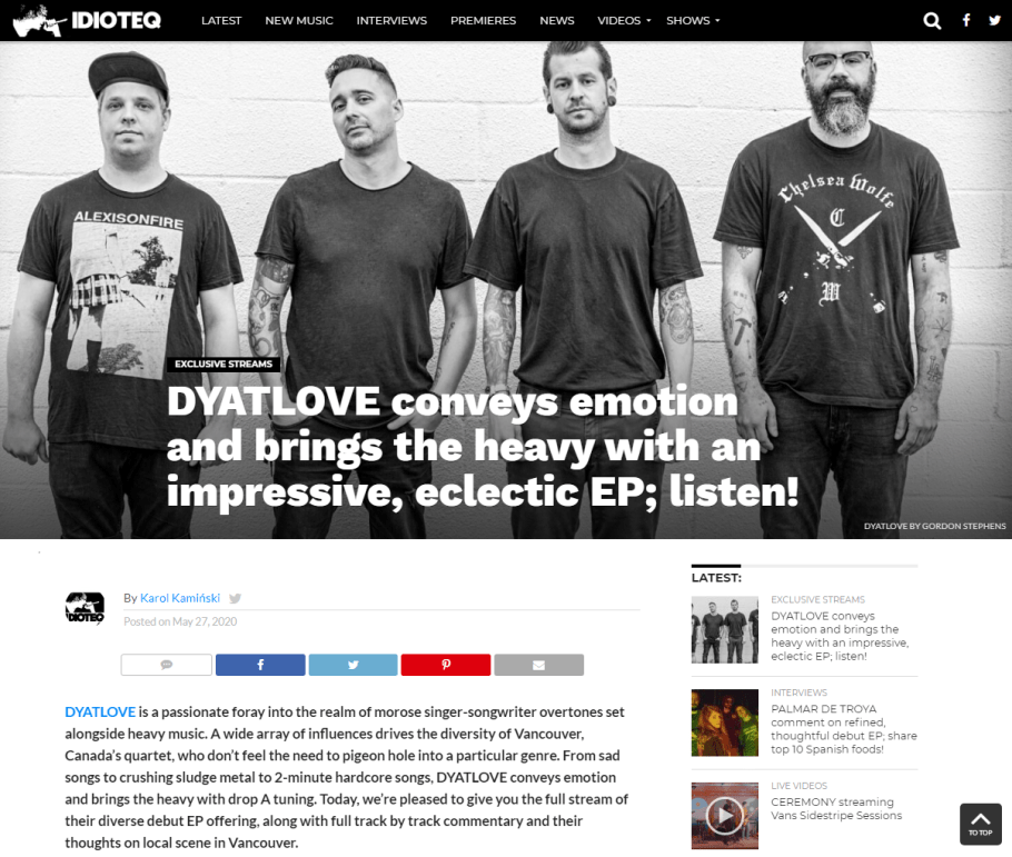 “DYATLOVE conveys emotion and brings the heavy with an impressive, eclectic EP” – Idioteq.com