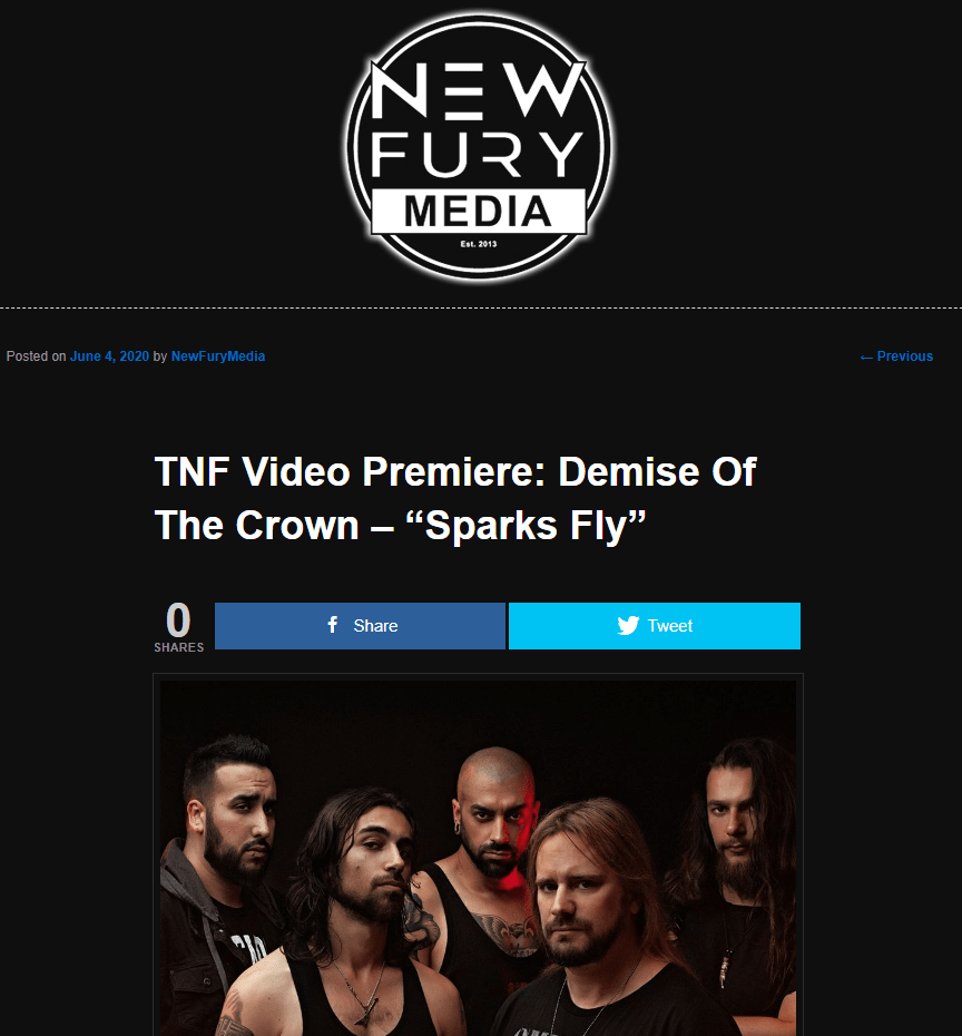 ‘Sparks Fly” w/ DEMISE OF THE CROWN Music Video Premiere via NewFuryMedia