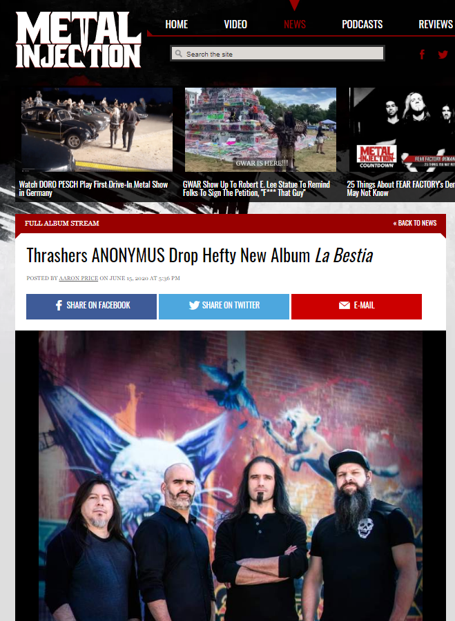 Metal Injection – Thrashers ANONYMUS Drop Hefty New Album La Bestia June 16, 2020 by Asher · Anonymus Thrashers ANONYMUS Drop Hefty New Album La Bestia Share this:TweetShare on Tumblr Click to share on Reddit (Opens in new window) Reddit More Click to share on Blogger (Opens in new window) Blogger Like Loading... Related « Prev Next » Leave A Comment ↓ Comments Leave a comment Cancel reply Δ Trackbacks & Pingbacks No incoming links found yet.