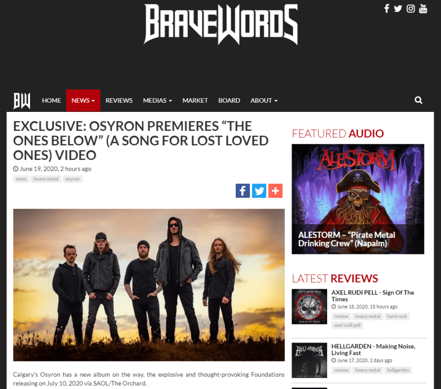 OSYRON Premiere Video ‘The Ones Below’ (A Song For Lost Loved Ones) via Bravewords