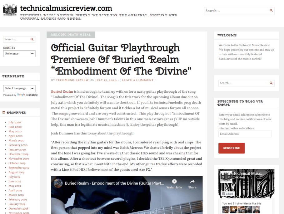 The next chapter in Dummer’s journey is 2020’s “Embodiment of the Divine” due out July 24th and while it is parallel to the first, both musically and lyrically, it is a forward step in a sojourn that will be continuing.