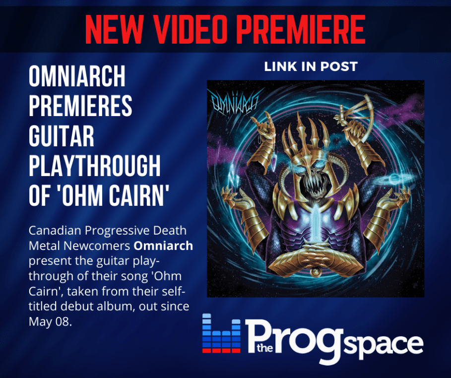 Unleashing their debut self-titled album earlier this May, Edmonton progressive death metallers Omniarch are sharing with fans their new guitar playthrough for the track “Ohm Cairn”. Guitarists Mason Wilson (playing on a Solar S1.6 FR) and Morgan Lambert (playing an Ibanez RG550 in C standard) showcase the shredding fest via its premiere on TheProgSpace HERE.