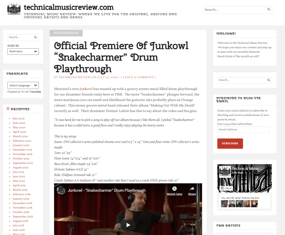 And speaking of in your face drums, today, Junkowl‘s drummer Dominic Labrie is sharing with fans his playthrough video for the track “Snakecharmer”. The track itself is about thinking you’re possessed by demons and trying to kill them, only to realize that the demons were actually just your own evil manifesting in your head.
