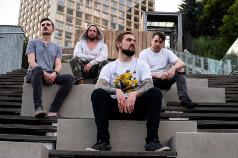 L-R – Caleb LeBlanc (Lead Guitar) | Tom Wolf (Drums) | Terence Thiessen (Scream Vocals) | Lee Stanhope (Rhythm Guitar/Clean Vocals)