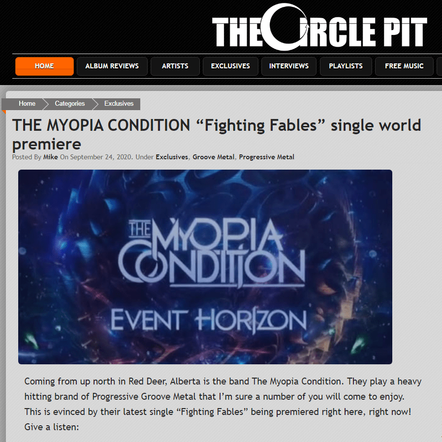 Canada’s The Myopia Condition recently announced their debut album “Event Horizon” and now the second single “Fighting Fables” is out and ready for ears.