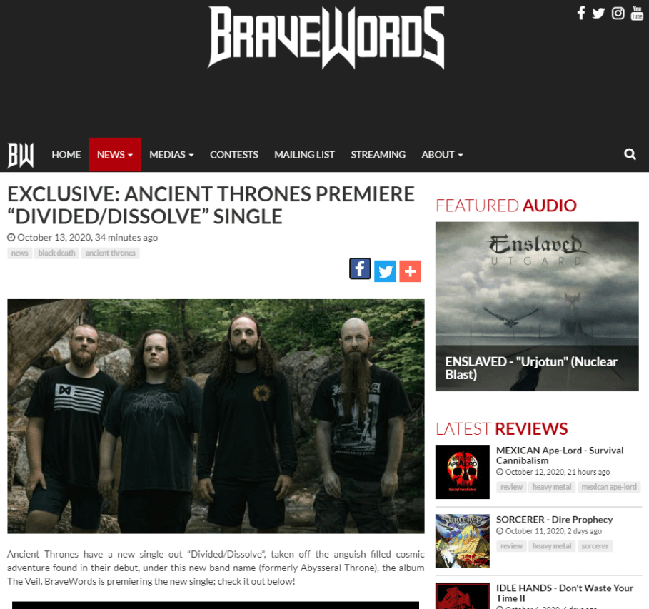 Ancient Thrones have a new single out “Divided/Dissolve”, taken off the anguish filled cosmic adventure found in their debut, under this new band name (formerly Abysseral Throne), the album “The Veil”.