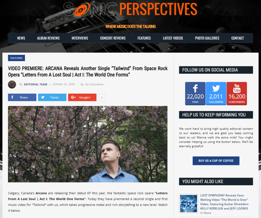 Calgary, Canada’s Arcana are releasing their debut EP this year, the fantastic space rock opera “Letters From A Lost Soul | Act I: The World One Forms”. They are releasing a second single and first music video “Tailwind” from this debut, which takes progressive metal and rich storytelling to a new level.