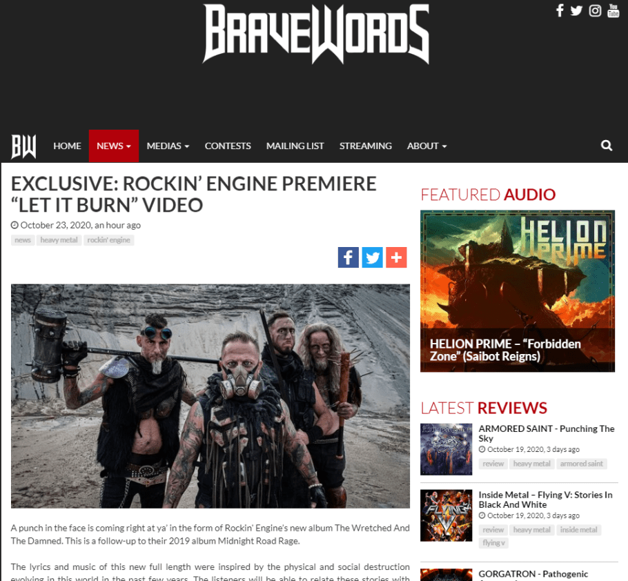 A punch in the face is coming right at ya’ in the form of Rockin’ Engine’s new album “The Wretched And The Damned”. This is a follow up to their 2019 album “Midnight Road Rage”.