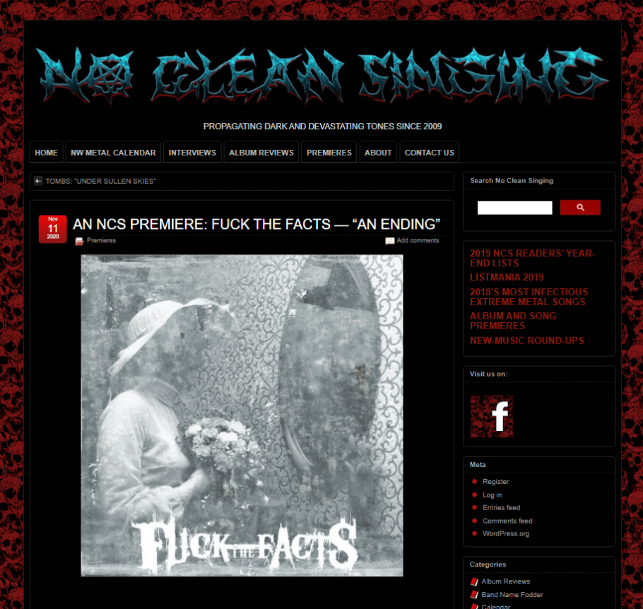 “FUCK THE FACTS brings a strong collection of extreme metal tunes, often technical and scathing, sometimes grindy and with just enough melody to digest without heartburn.” – Blabbermouth