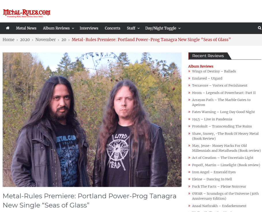 “Tanagra’s Meridiem will likely please and intrigue fans of American progressive power metal, thanks to the band’s ambitious and lightly complex songwriting.” – Danger Dog Reviews