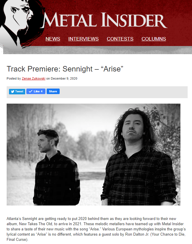Atlanta’s Sennight is dropping a new single “Arise” off their upcoming 2021 album “New Takes The Old”.