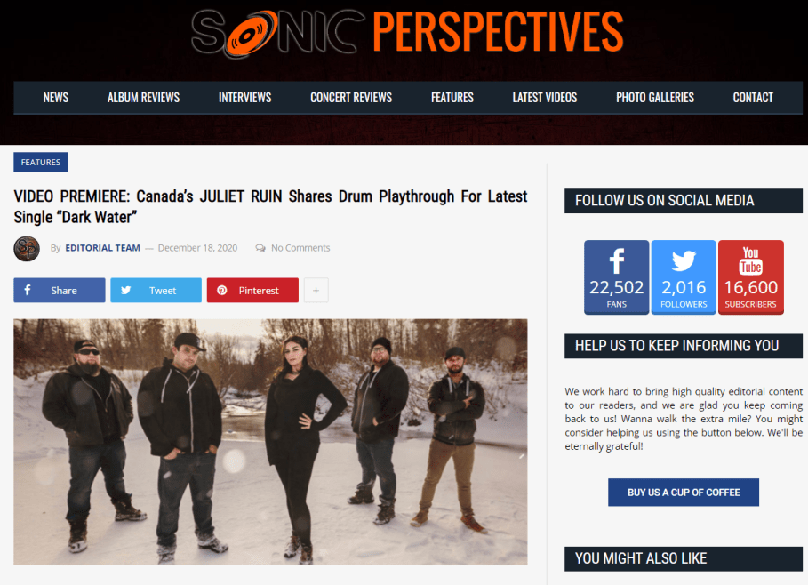 This past November, Edmonton, Canada’s Juliet Ruin excited fans with their new single “Dark Water”. Their first of many new sounds to come since releasing their highly praised 2019 album “Old Stardust, Love, and Chaos”.