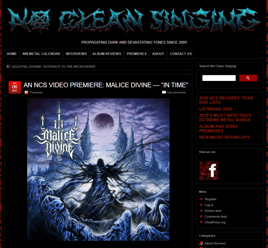 Hailing from Toronto, Canada, one-man act Malice Divine is revealing the debut self-titled, full-length release coming February 19, 2021. Today, the first single “In Time” premieres on NoCleanSinging HERE.
