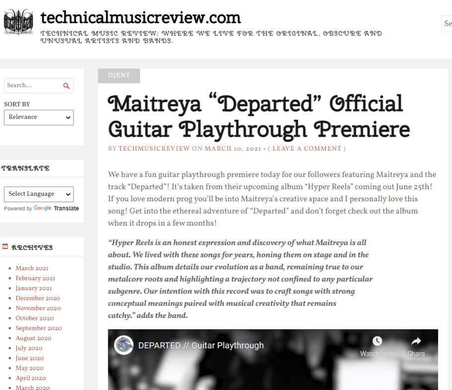 The guitar playthrough for “Departed” can be viewed via its premiere on TechnicalMusicReview HERE.