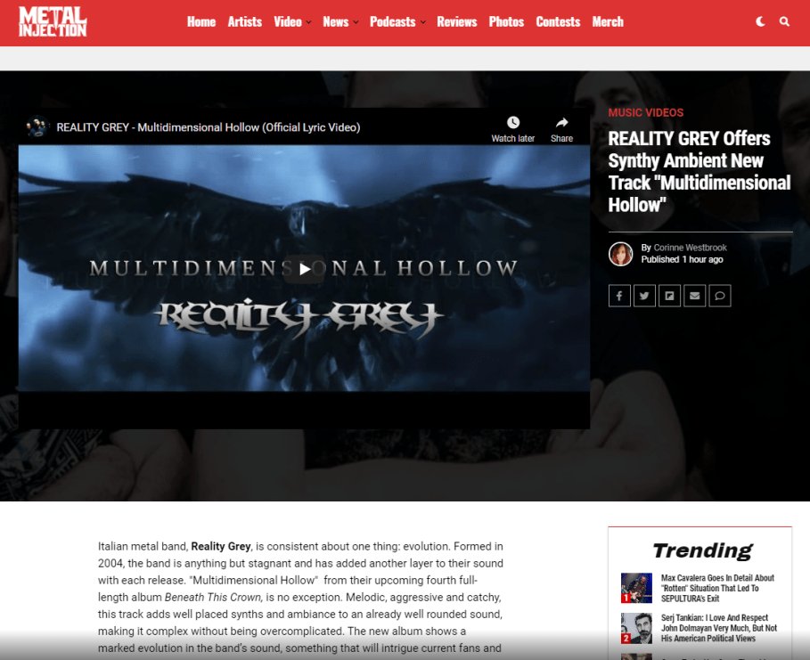 Italy’s Reality Grey Release “Multidimensional Hollow” Off “Beneath This Crown”