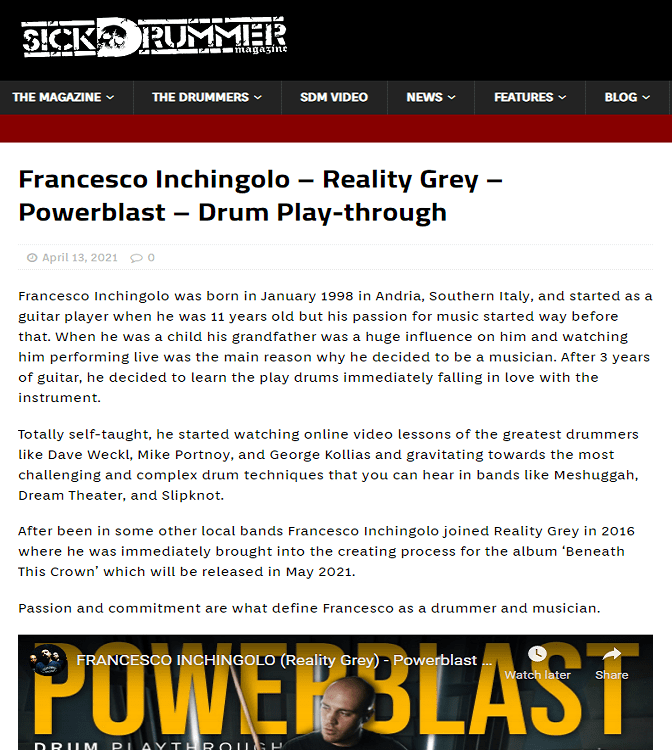 Italy’s Reality Grey Shares Their “Powerblast” Drum Playthrough