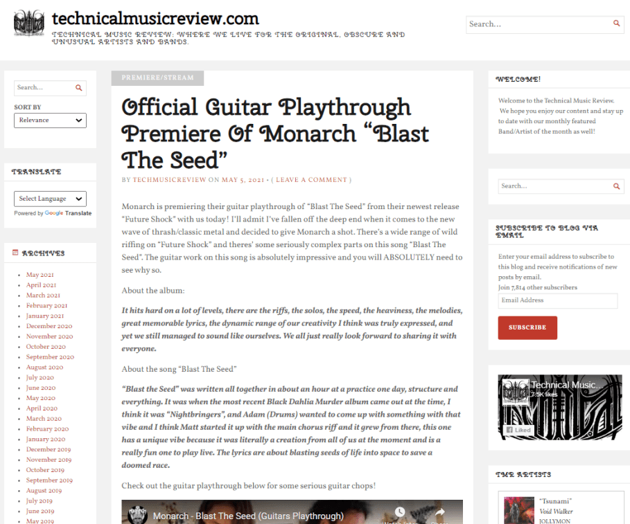 “If there’s a reason to stick with Monarch’s thrashy second album Future Shock, it’s the fantastic chemistry between guitarist/vocalist Matt Smith and guitarist Casey Trask. They split soloing duties down the middle, trading them off with the finesse of a Mustaine/Friedman pairing, while locking in with harmonies on songs like “Khaos Warrior.” The first song alone, “Blast The Seed,” has seven guitar solos in its five minutes, and that’s not an exception, as all ten tracks have a truckload of impressive guitar performances.” – Heavy Music Headquarters