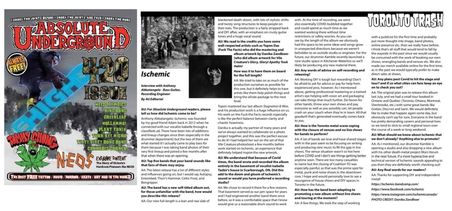 Absolute Underground Mag – April-May 2021 – Ischemic, Juliet Ruin, Warcall, No Hope For The Lost May 11, 2021 by Asher · Ischemic · Juliet Ruin · No Hope For The Lost · Warcall Share this:TweetShare on Tumblr Click to share on Reddit (Opens in new window) Reddit More Click to share on Blogger (Opens in new window) Blogger Like Loading... Related « Prev Next » Leave A Comment ↓ Comments Leave a comment Cancel reply Δ Trackbacks & Pingbacks No incoming links found yet.