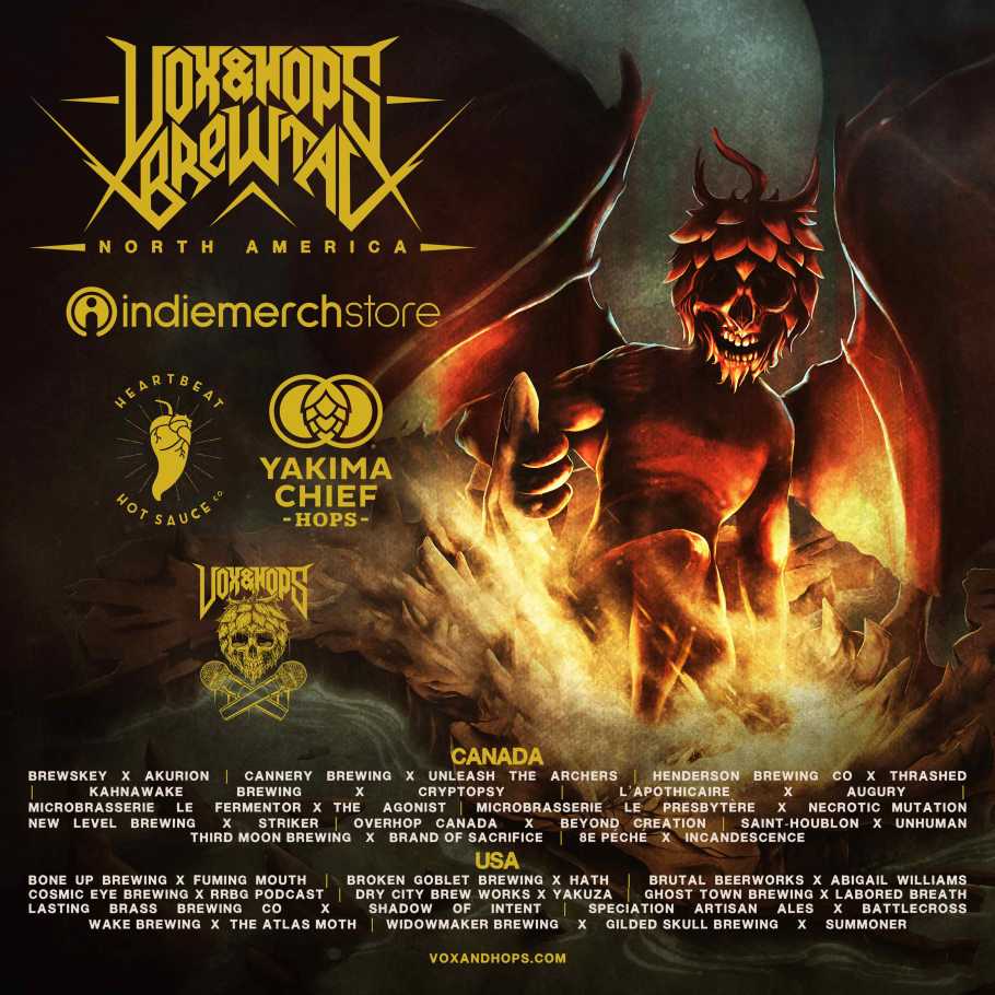 Montreal, Quebec based Vox&Hops Metal Podcast today announces the launch of the first edition of Vox&Hops Brewtal North America presented by IndieMerchstore. Vox&Hops Brewtal North America consists of 22 Vox&Hops Alumni (past guests of the podcast) paired with breweries to create unique collaborative metal inspired craft beers for their bands.