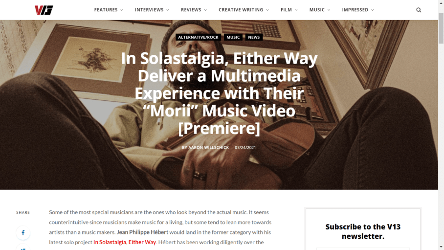 In Solastalgia, EitherWay has a new EP “Morii” coming out and in advance of that, a music video for the title track is available to watch now. The solo project of Jean Philippe Hébert exists purely in instrumental form, a heavy, experimental, post-rock listening experience that is progressive, cinematic and in a genre all its own.