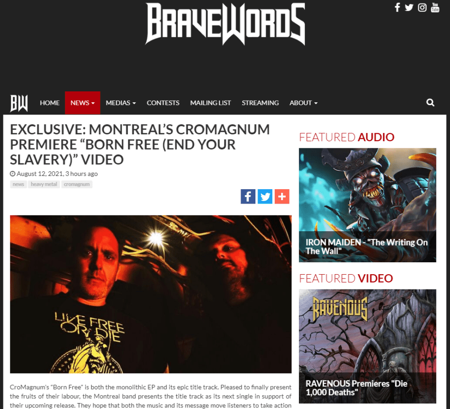 “Born Free” is a creed to live by and its core message is for people to have the absolute necessity to proactively exercise their rights, their liberties and their freedoms. Musically, CroMagnum presents a refined metal attack that is fast-paced and in your face, leaving you with absolutely no chance at being apathetic or indifferent. The band explains the imagery behind the track: