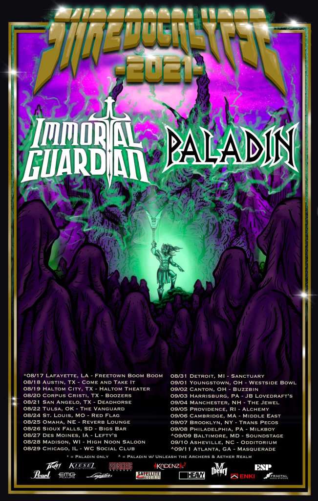 “We are so excited to finally go back on tour,” says guitarist/keyboardist Gabriel Guardian. “We haven’t even seen each other in person since NAMM 2020, yet since then, we have been able to write and release a new album entirely over the Internet. It feels good to know we will finally play songs live that we have only played in studio until now. Mid-pandemic, I was fortunate enough to learn how to program light shows and organize bigger productions, so you can expect IMMORTAL GUARDIAN’s tour to have new music, a new light/laser show, new gear and a new, kickass, epic live show. We can’t wait to see y’all on the road!”